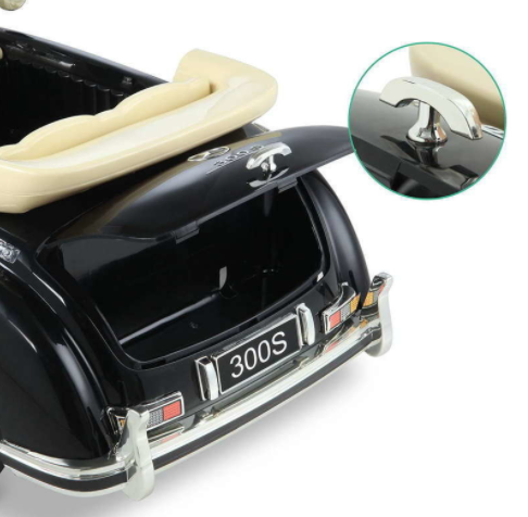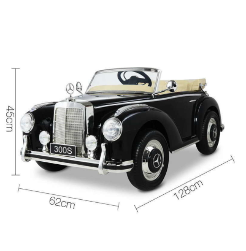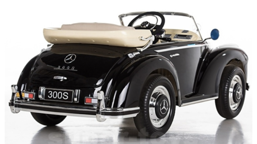 This beautiful classic Mercedes 300s model is amazing! The metallic black Mercedes 300S children's car is produced under license from Mercedes-Benz and suitable for children from 1 to 5 years old.
