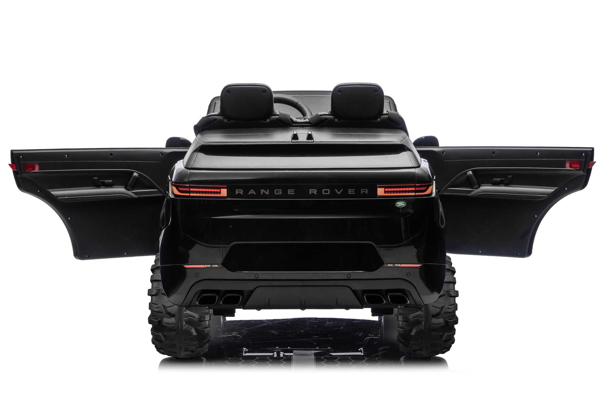 The black Range Rover Sport 24V 2-seater electric ride-on car is amazing! This is the new Range Rover Sport model! This electric ride-on car is officially licensed by Land Rover and suitable for 2 children aged 1 to 6 years.