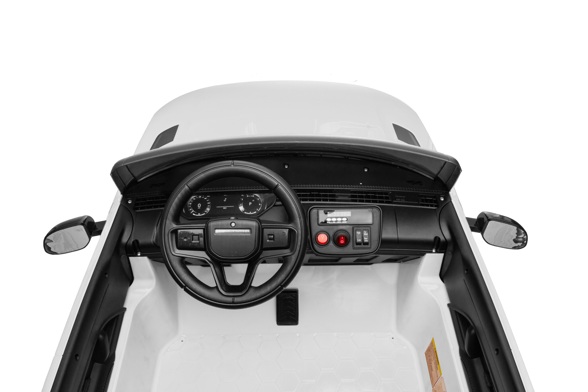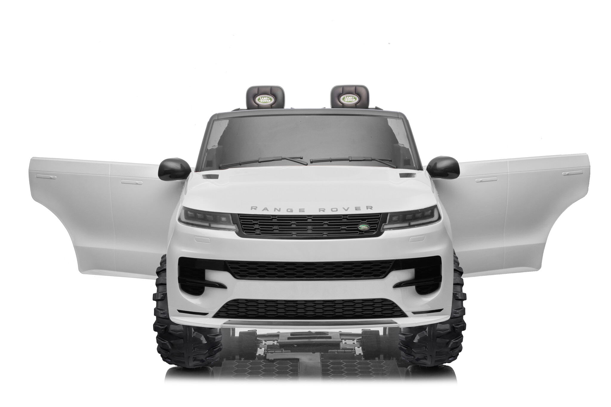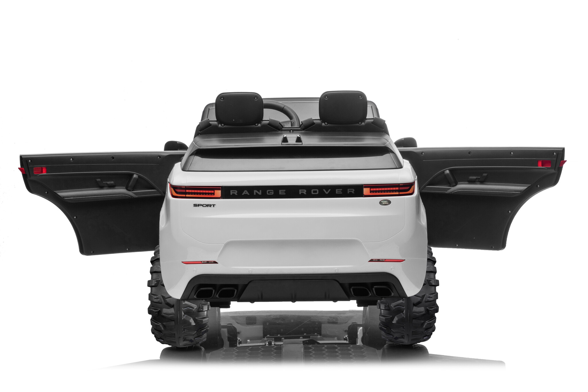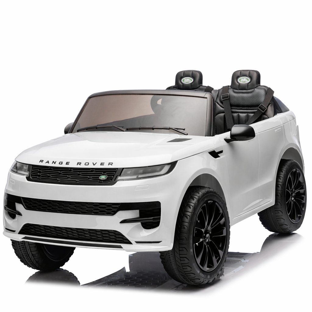 The white Range Rover Sport 24V 2-seater electric ride-on car is amazing! This is the new Range Rover Sport model! This electric ride-on car is officially licensed by Land Rover and suitable for 2 children aged 1 to 6 years.