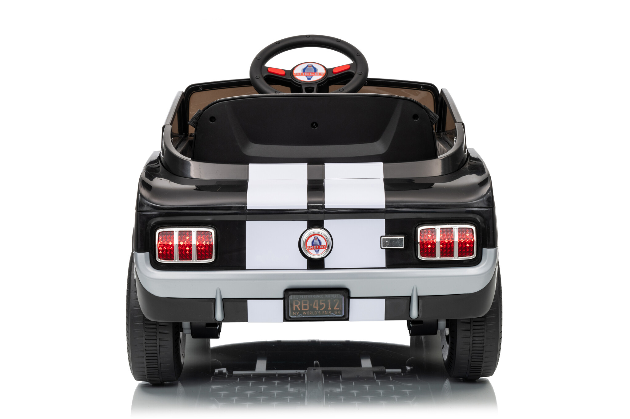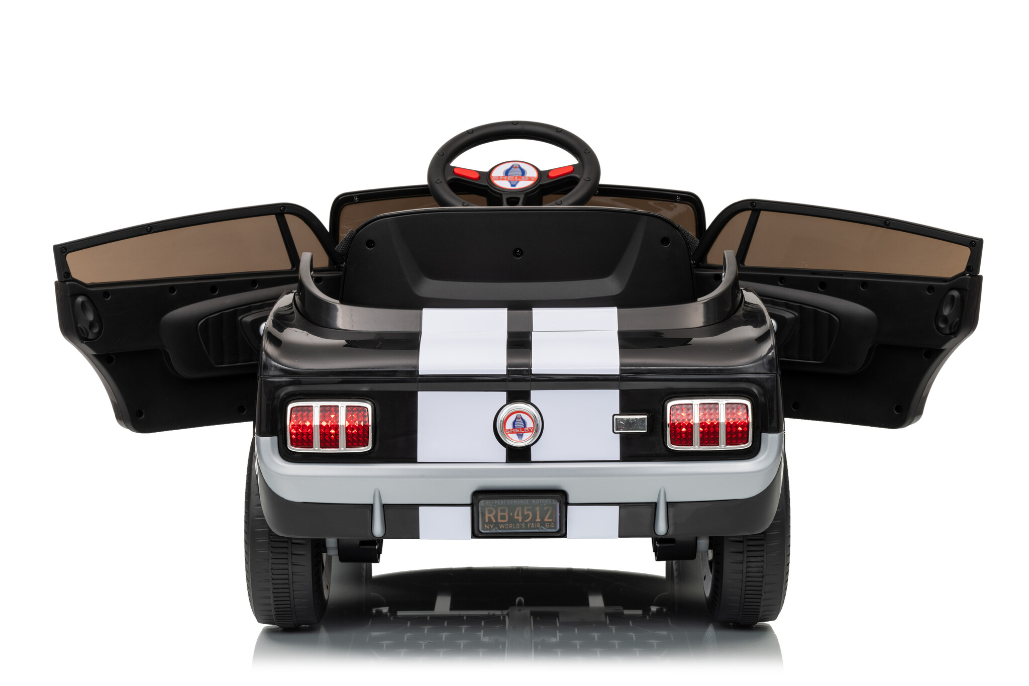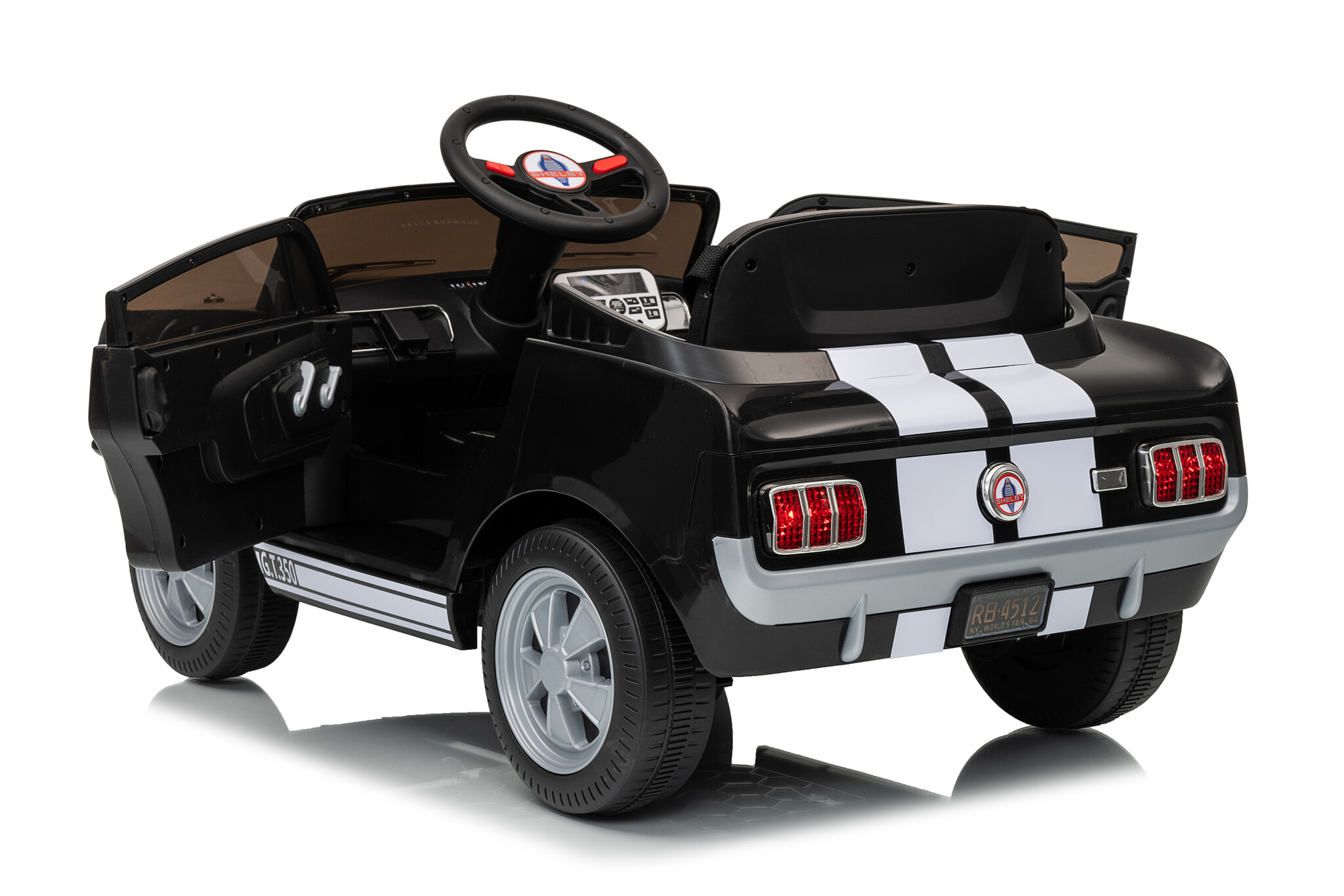 This Shelby GT350 electric children's car features a 12V 4.5Ah battery and two 12-volt motors. The two drivetrains are located on both rear wheels, and this children's car has adjustable speeds between 2 and 4.5 km/h (1.2 and 2.8 mph) via the remote control. Furthermore, this children's car is equipped with LED lighting, music, USB and MP3 inputs, two real doors, and much more! With the soft start function, the car will gradually build up speed.