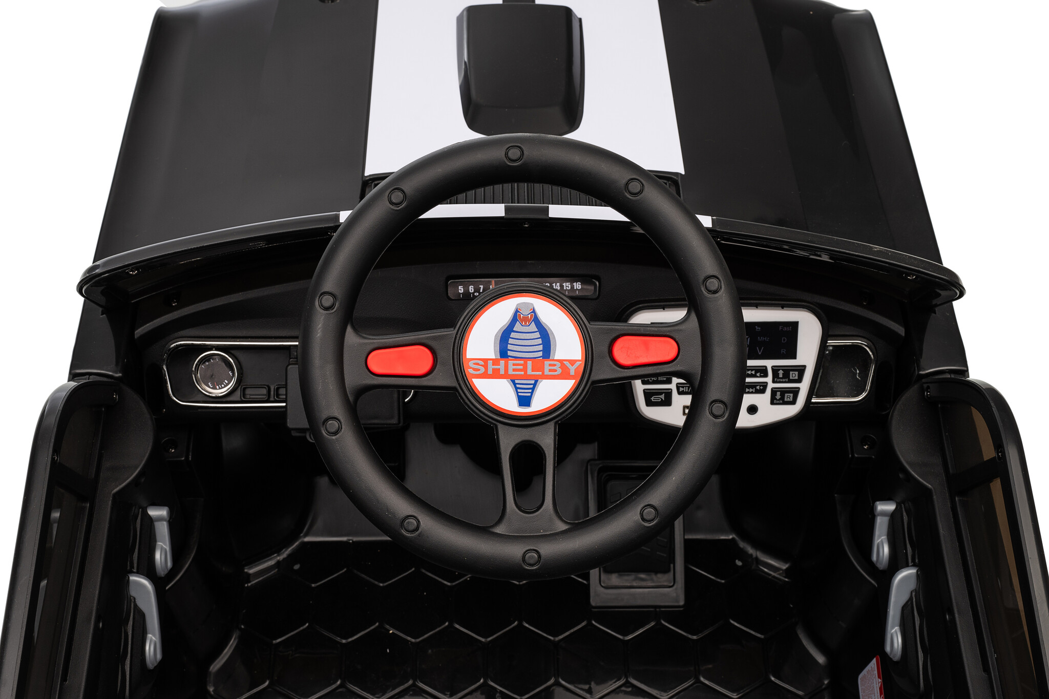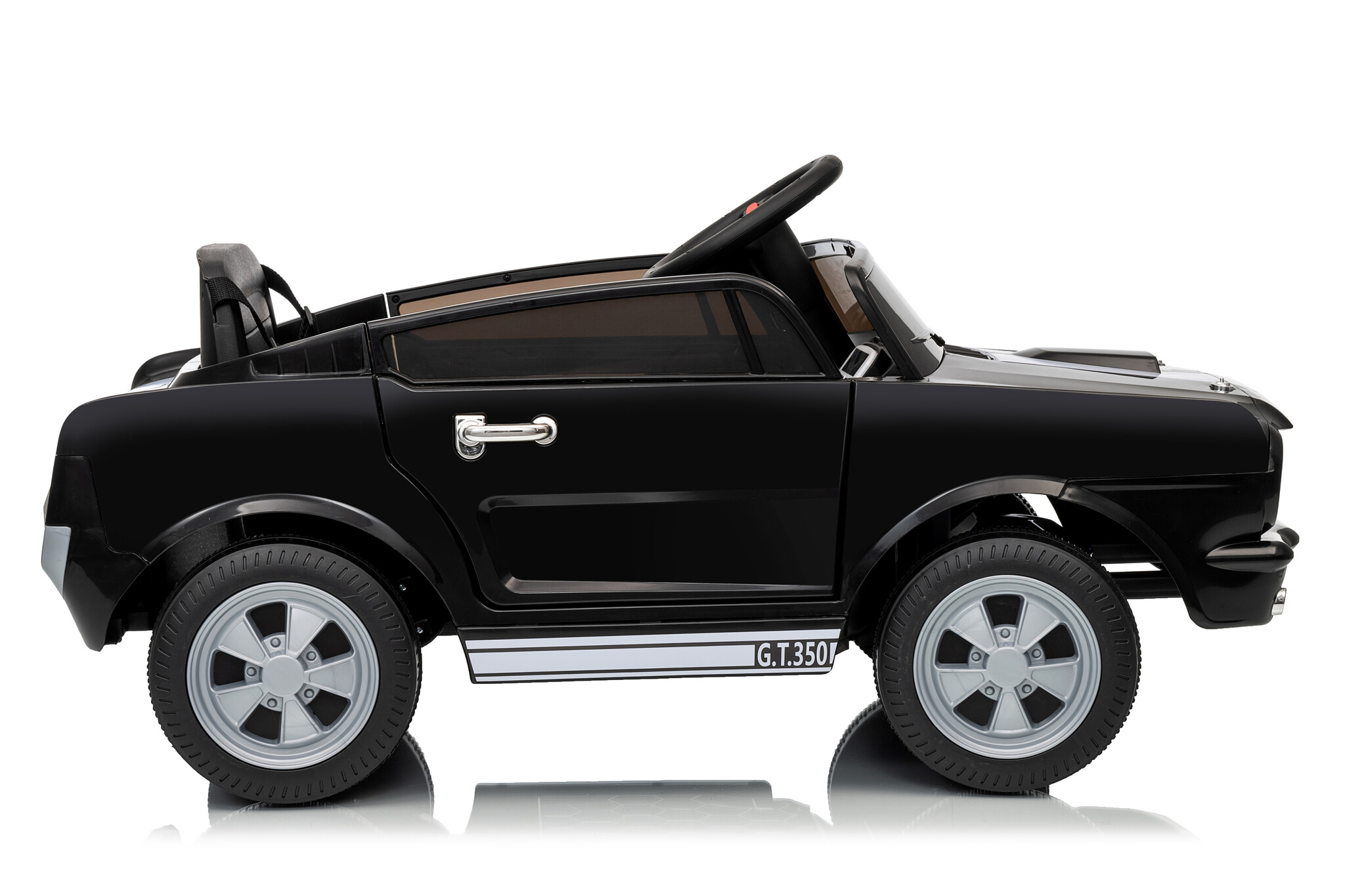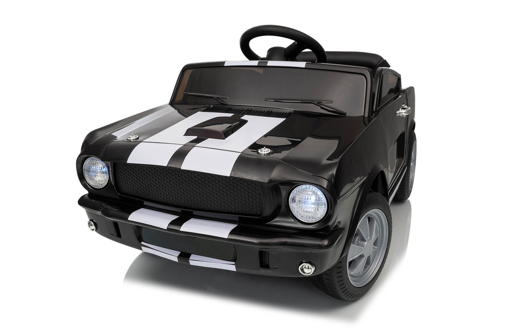This Shelby GT350 electric children's car features a 12V 4.5Ah battery and two 12-volt motors. The two drivetrains are located on both rear wheels, and this children's car has adjustable speeds between 2 and 4.5 km/h (1.2 and 2.8 mph) via the remote control. Furthermore, this children's car is equipped with LED lighting, music, USB and MP3 inputs, two real doors, and much more! With the soft start function, the car will gradually build up speed.